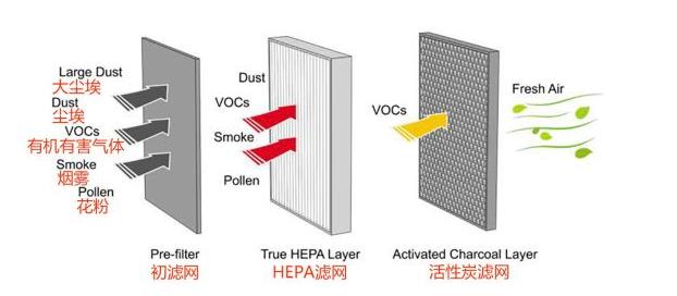 雖然除去甲醛的最好辦法就是通風,但大家經(jīng)常還能看到空氣凈化器的去甲醛的功能。在被動吸附過濾式空氣凈化器中,這個功能也是通過濾網(wǎng)來實現(xiàn)的。甲醛本身也是氣體,所以HEPA濾網(wǎng)在這時無法起效,而是通過再附加一層活性炭濾網(wǎng),通過吸附甲醛的方式來去除甲醛。